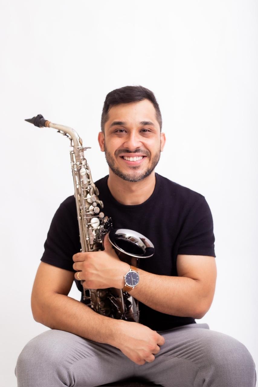 Aos 14 anos, iniciou seus estudos musicais a convite do maestro da igreja local. Apesar desse primeiro contato, foi apenas aos 18 anos que passou a se dedicar ao saxofone, estudando harmonia e improvisação com o professor Oillu Ribeiro. Nesse período, desenvolveu sua linguagem musical por meio da escuta atenta e da reprodução de solos de grandes saxofonistas que seguem como referência em sua trajetória.